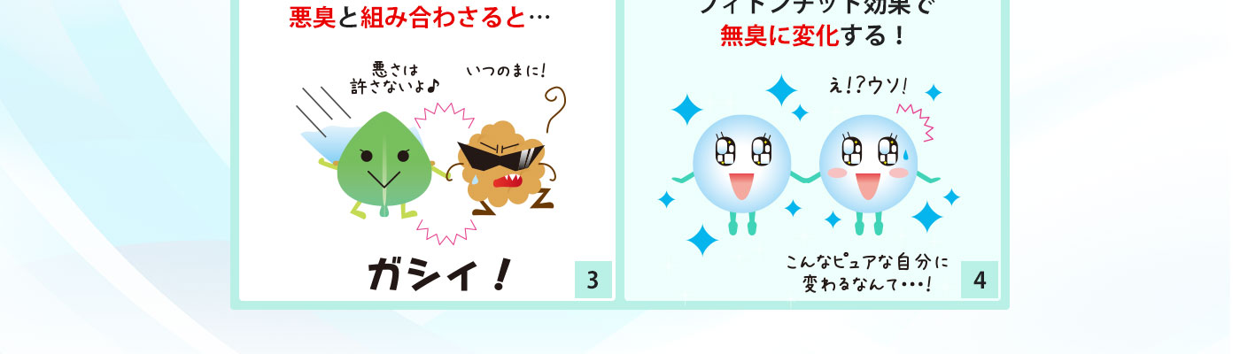 20種類以上の天然植物成分を配合した独自素材が、全身にフィトンチッド効果を発生させてくれて、悪臭とは無縁になるんです。