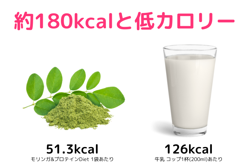 プロテインの粉末自体はなんと51.3kcal!牛乳で割っても180kcal以下!